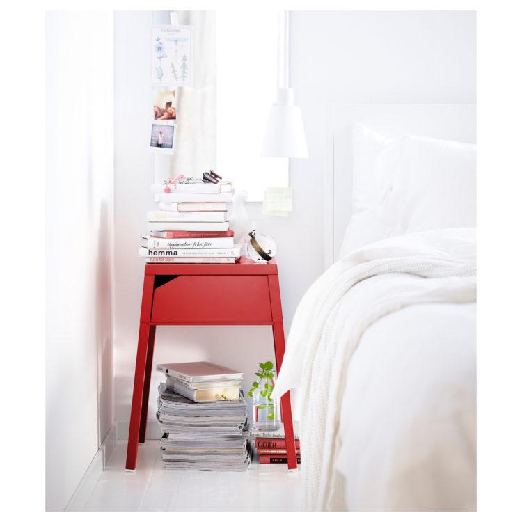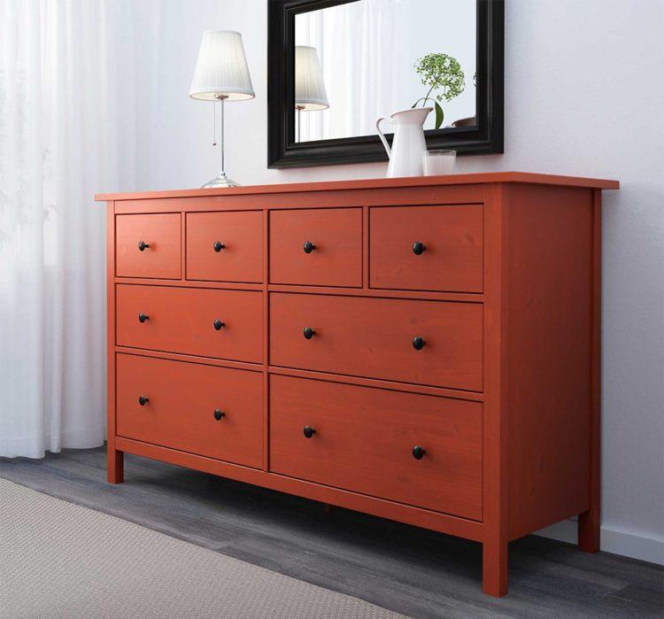 La cómoda IKEA en rojo es una muy buena opción para un dormitorio. Puede elegir la cómoda IKEA (el catálogo está en su sitio web) en dos puntos, incluso si desea que la cómoda (profundidad 40 cm) esté en rojo.