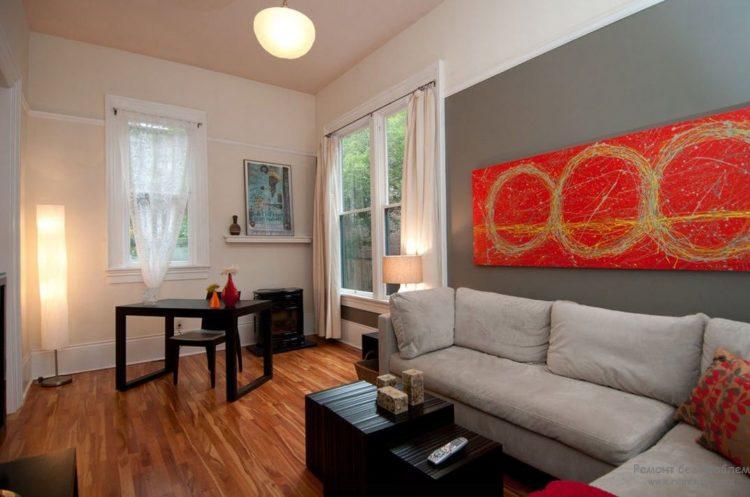 Teniendo en cuenta las opciones con las que se combina el color con el gris, asegúrese de prestar atención al rojo. Esta combinación te permitirá decorar con estilo la habitación.