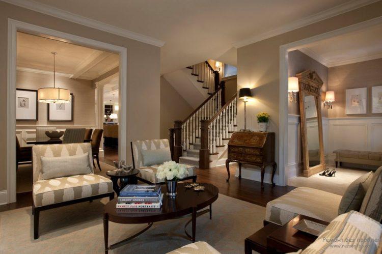 En tales muebles, papel tapiz y otros elementos de decoración, casi no hay rastros de manos, suciedad, polvo y otros matices desagradables con los que cada ama de casa moderna tiene que lidiar todos los días. A continuación, le sugerimos que se familiarice con muchos ejemplos no menos interesantes de soluciones de diseño interesantes en colores gris-beige.