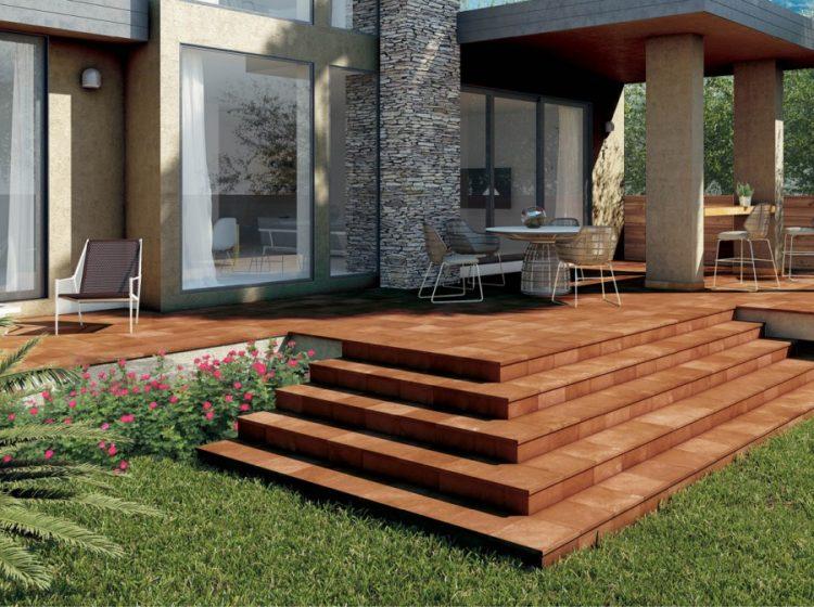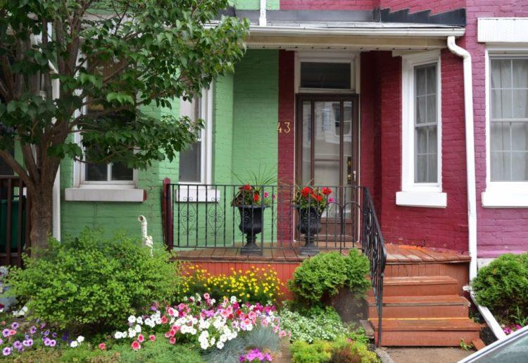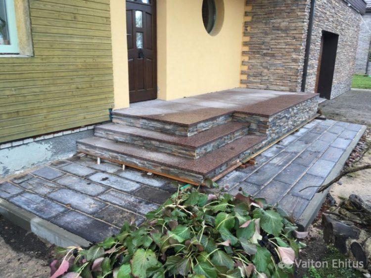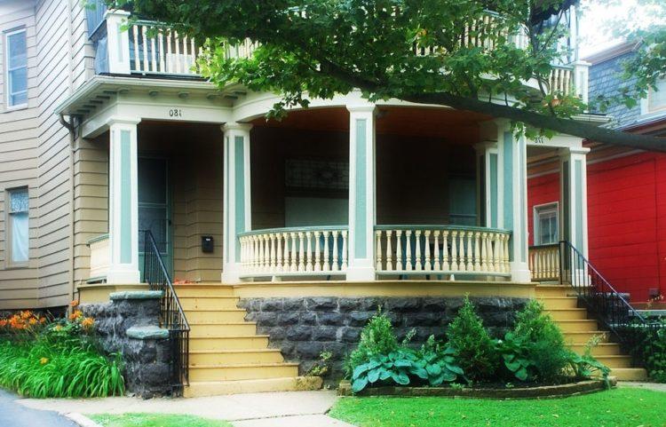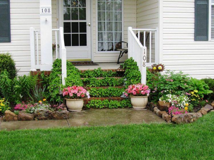 El porche de la casa se puede hacer en tonos verdes. Pero el porche de la casa con vegetación alrededor de las escaleras se verá mejor.