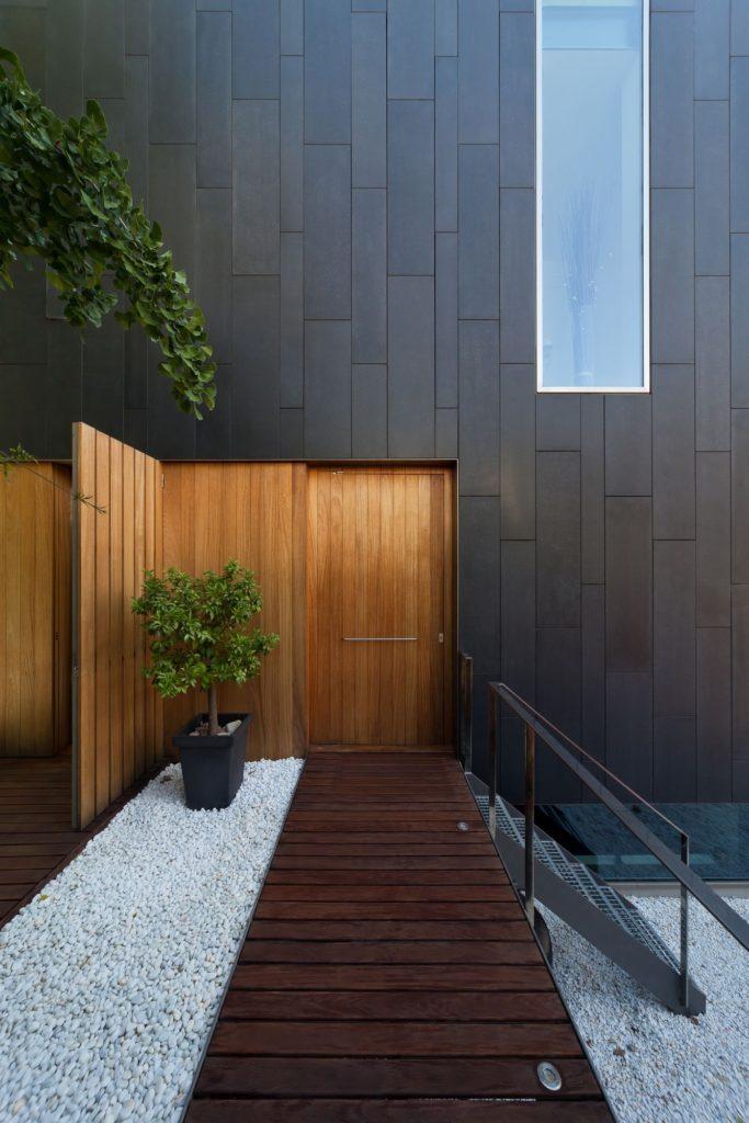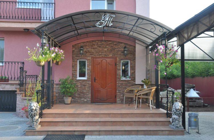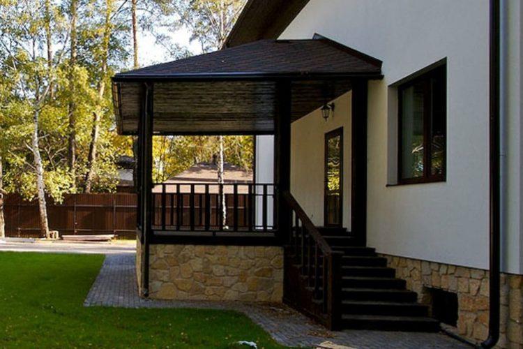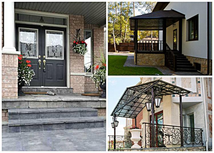 Pero en una casa privada, el árbol no siempre se arraiga bien. Las casas de madera son bastante arriesgadas, ya que el árbol se enciende rápidamente. Es mejor hacer una casa de metal. Hermosa puerta de entrada, escalones elegantes para el porche e incluso un porche de madera: todo esto es real. Para saber cómo hacer un porche y cómo se verá el porche de la casa, vea proyectos, fotos e ideas a continuación.