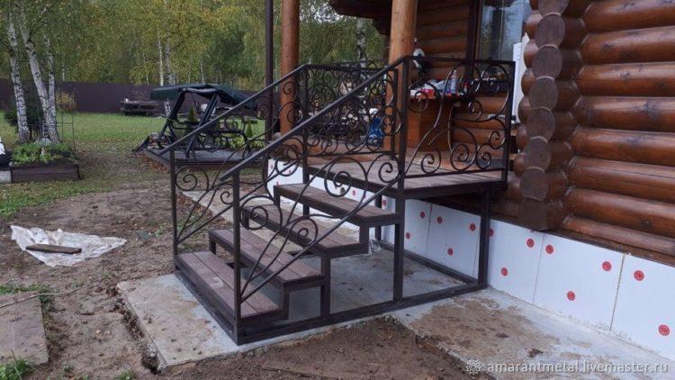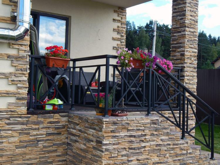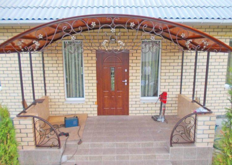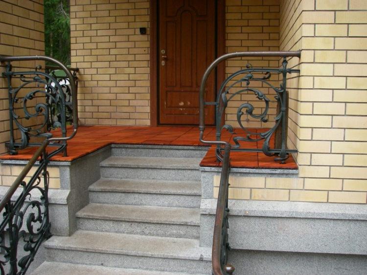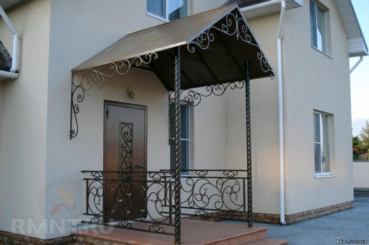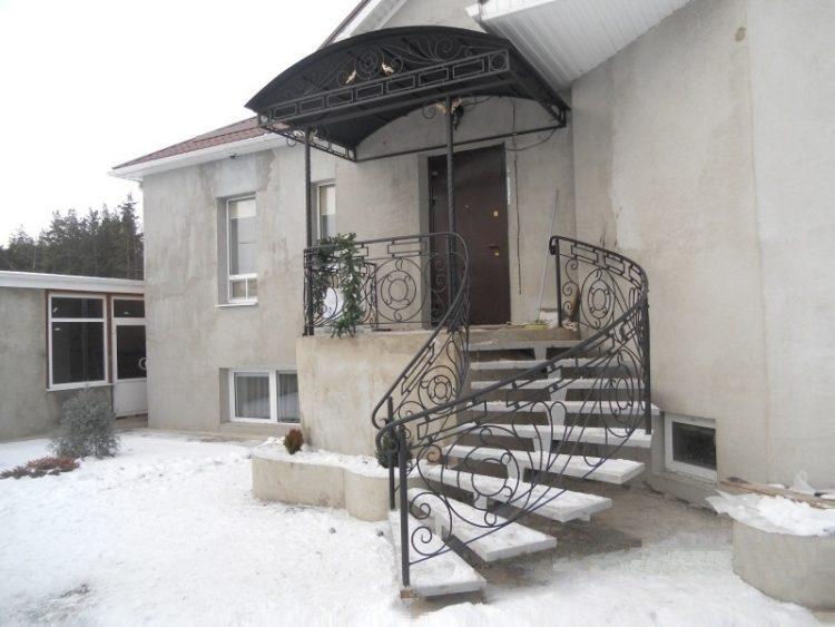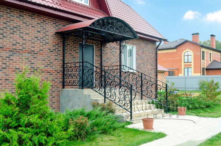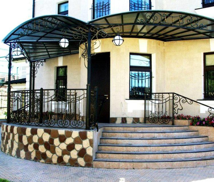 Porche forjado a menudo se hace en colores oscuros. Parece este porche, fotos e ideas, ver más abajo.