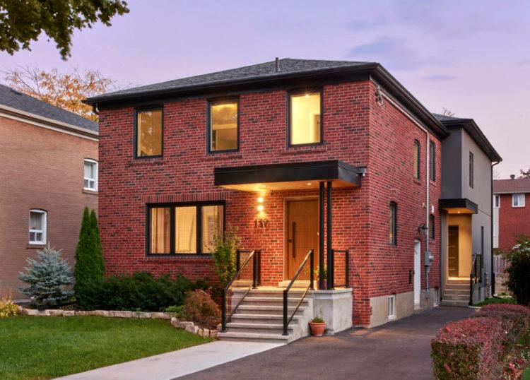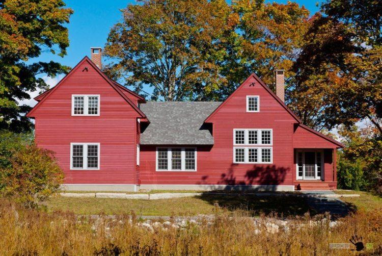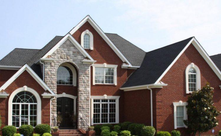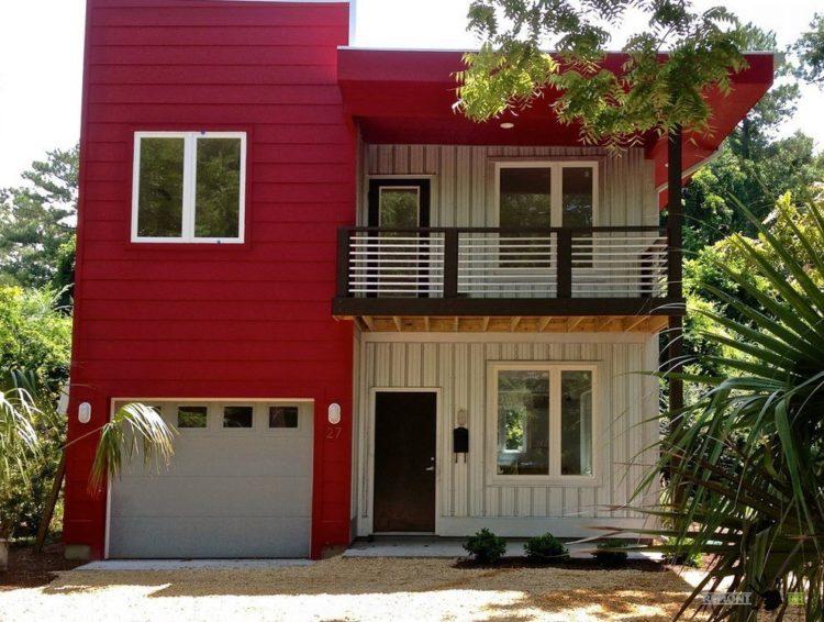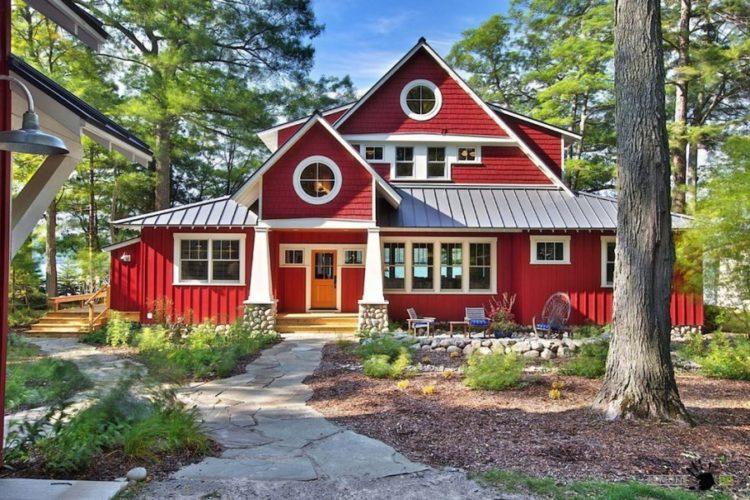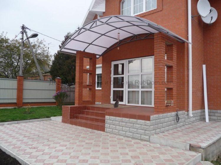 Si desea que el porche de una casa privada (la foto con visera está debajo) se vea elegante, elija un color rojo. El porche en sí puede hacerse blanco, y el dosel o pico rojo.
