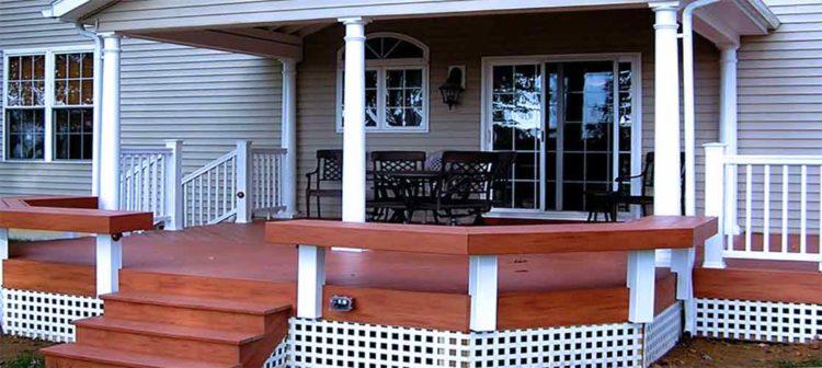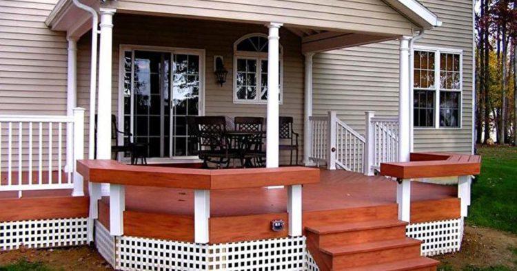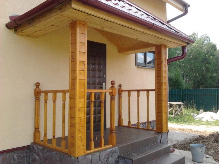 Una casa cerrada y un porche con tus propias manos en tonos claros se verán muy hermosos. El porche de madera en color beige es una solución muy elegante.