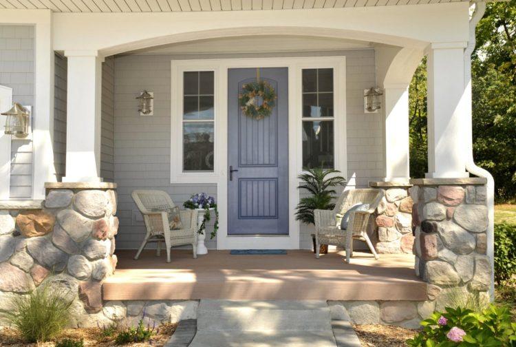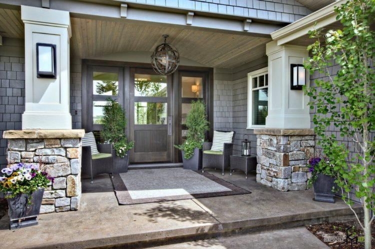 También una opción frecuente para muchos son los tonos grises. Tal interior del porche se ve hermoso si la casa es pequeña y ordenada.