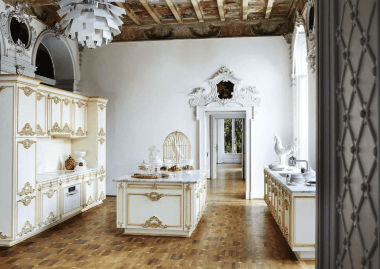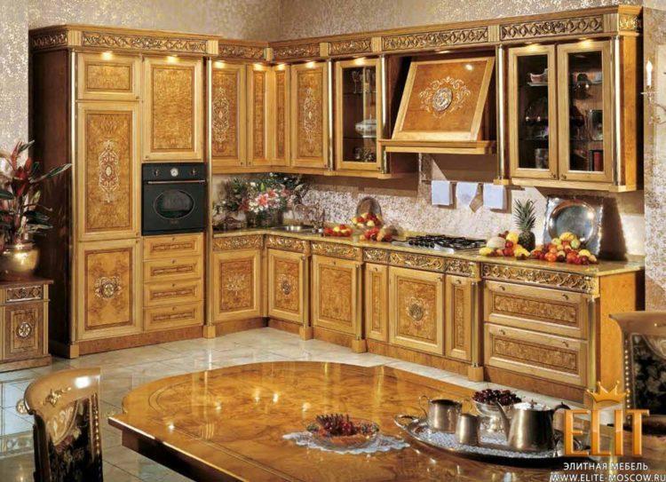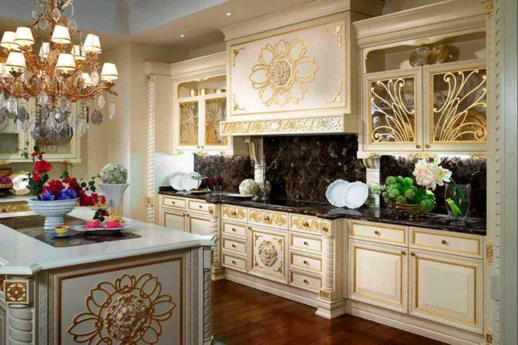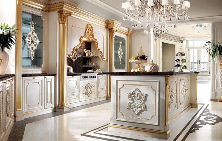 La cocina barroca es siempre una apariencia atractiva, altos niveles de confort y practicidad. No es fácil cocinar en tales cocinas, pero también querrás estar allí, por lo que cada vez con mayor frecuencia dejarás a toda tu familia reunida en la misma mesa. Además, le sugerimos que estudie una lista sólida de ejemplos sobre cómo aún puede diseñar instalaciones de cocina en el estilo mencionado anteriormente.