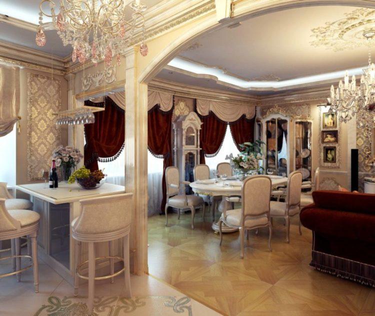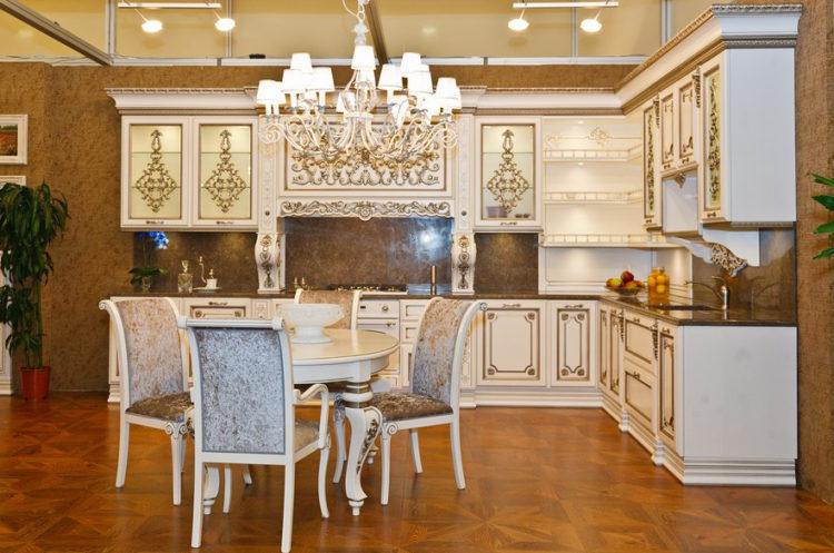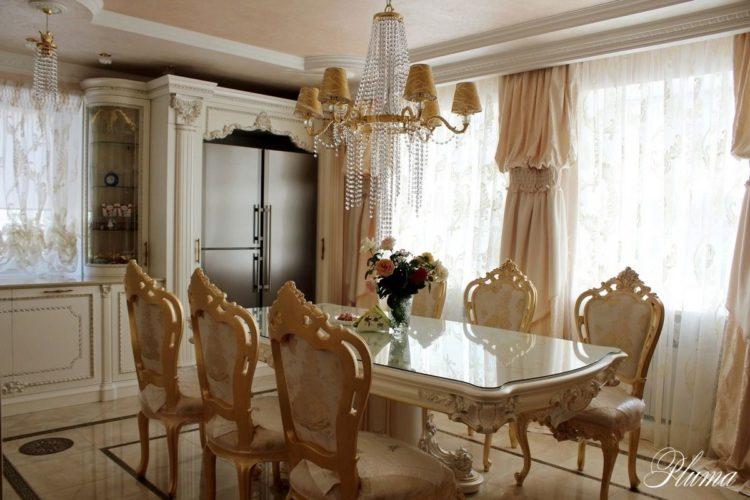 Le permite crear la comodidad necesaria y enfatizar la elegancia de toda la casa. En una cocina así, no solo disfrutarás de tus obras maestras culinarias, sino que también harás amigos cercanos con orgullo. También tenga en cuenta que la cocina rococó y barroca se organiza de manera bastante simple en habitaciones de cualquier tamaño. Es decir, incluso en un espacio pequeño, puede organizar una zona decente para una recepción y cocina cómodas.