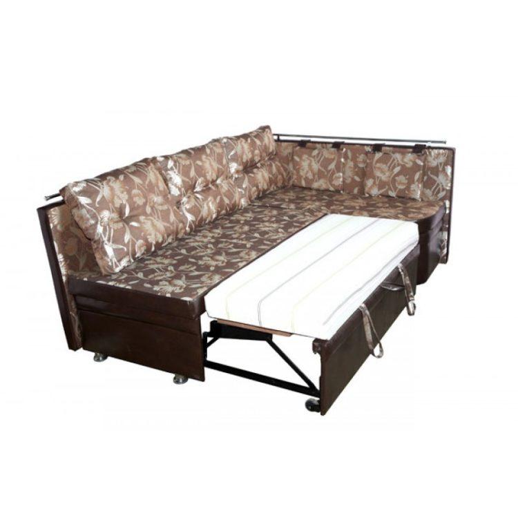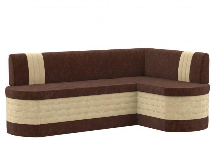 Un pequeño sofá de cocina en marrón y beige es extremadamente práctico de usar. También tenga en cuenta que estos sofás pequeños en la cocina se pueden encontrar con una litera.