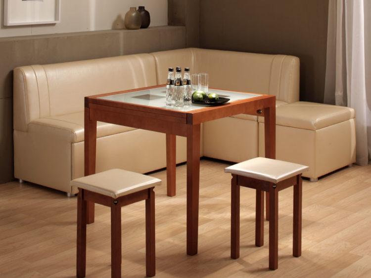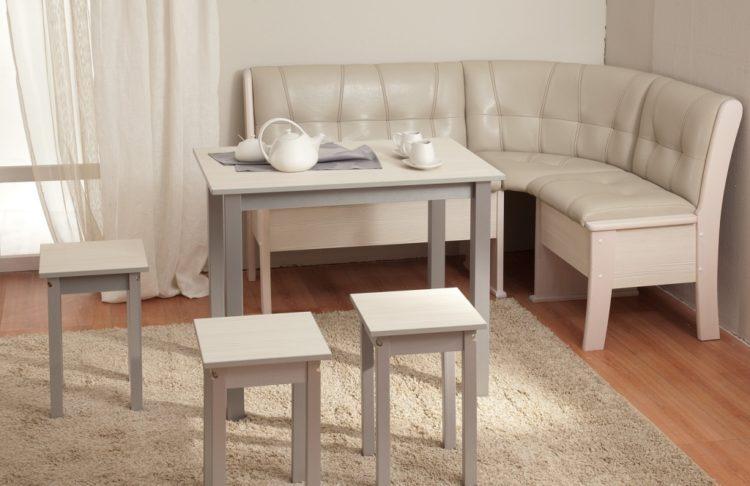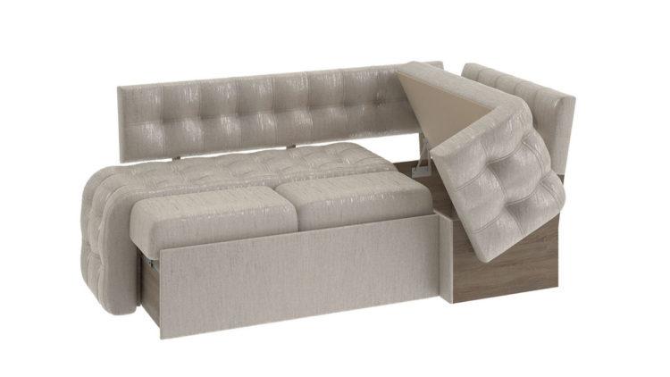 Un sofá de esquina para la cocina en color beige se considera estándar. Es en este color que la esquina se encuentra con mayor frecuencia en la tienda.