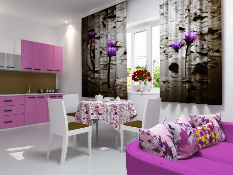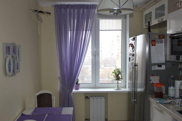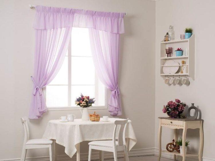 Puede elegir cortinas de color lila claro en la cocina o en la sala de estar y no tener miedo de que sus habitaciones se vuelvan sombrías. Los tonos claros de las telas, por el contrario, las harán más brillantes.