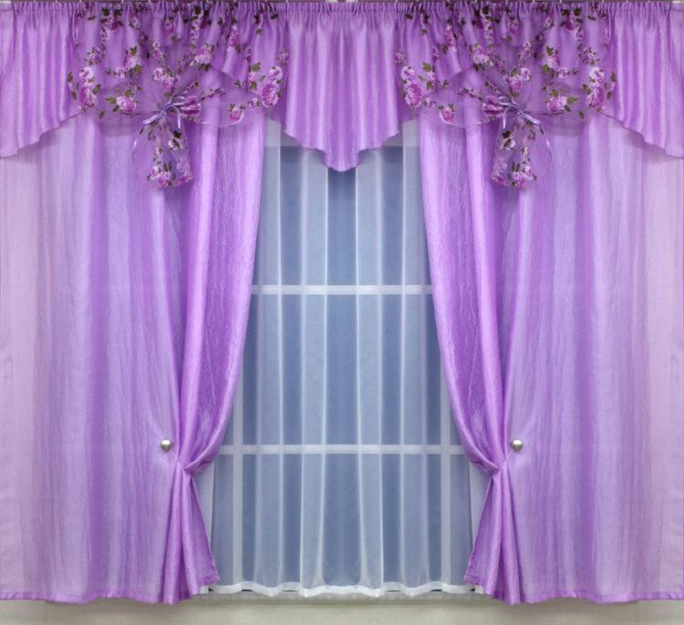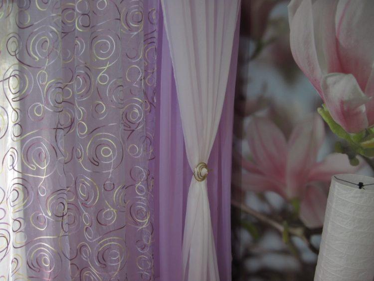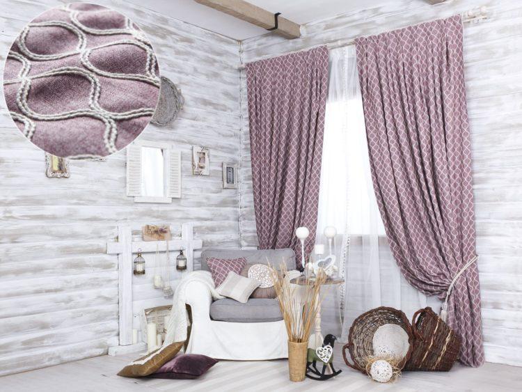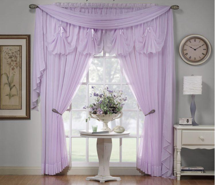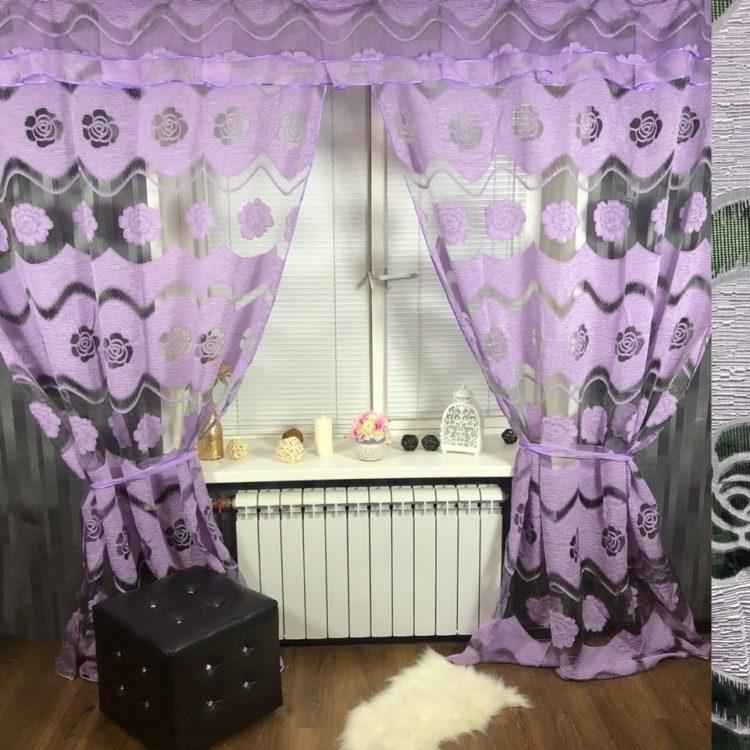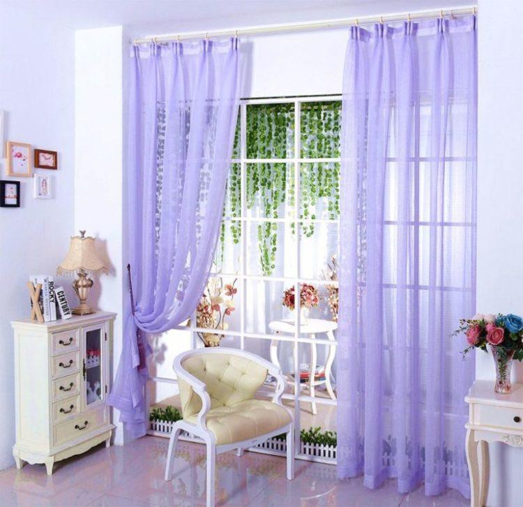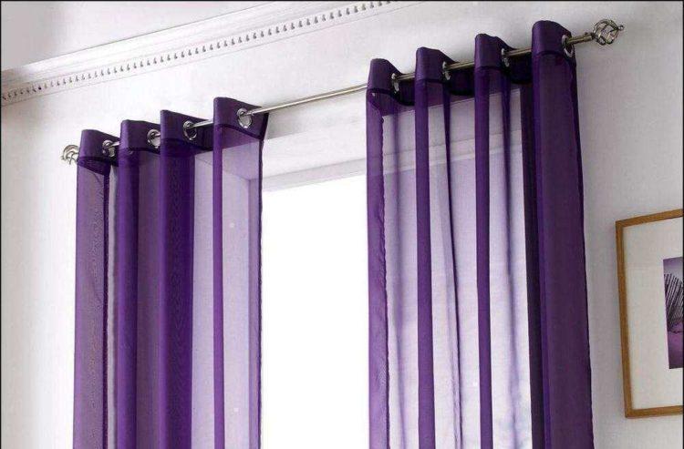 - Cortinas de color violeta claro en el interior (foto de ejemplos reales)