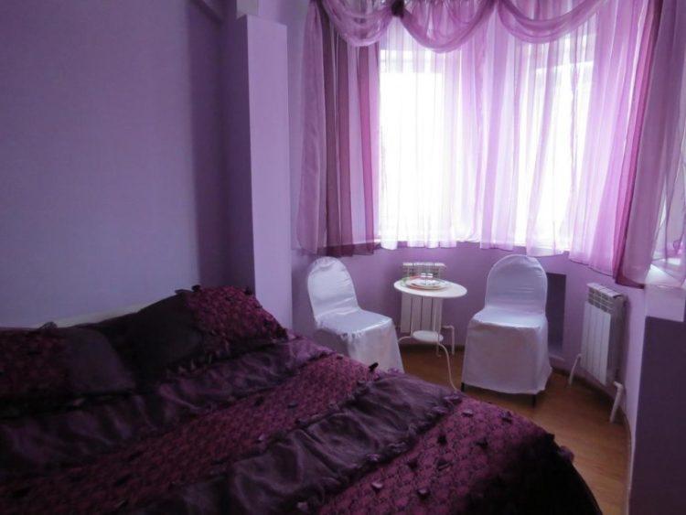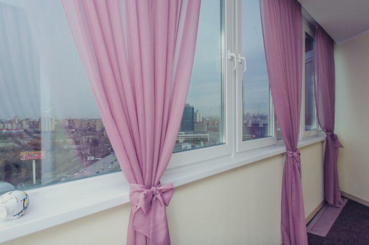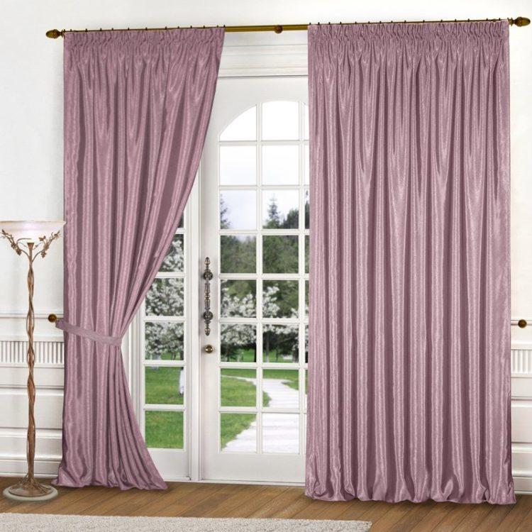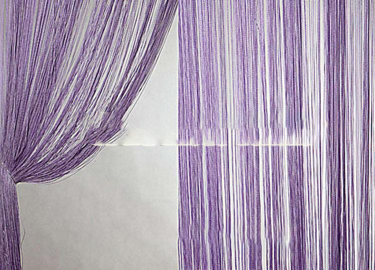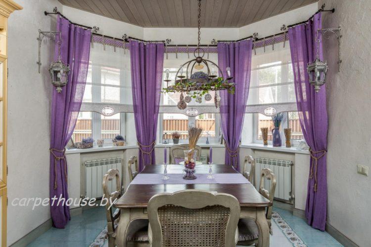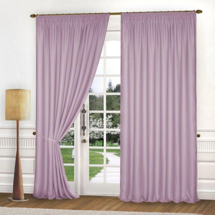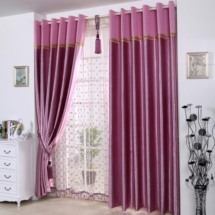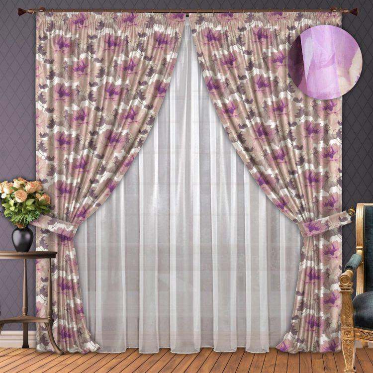 - Cortinas de color violeta claro en el interior (foto de ejemplos reales)
