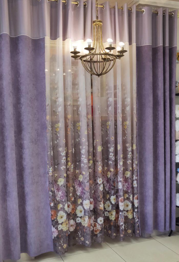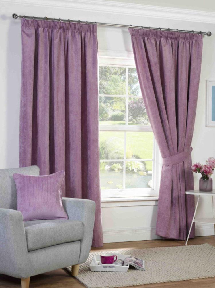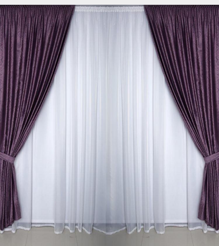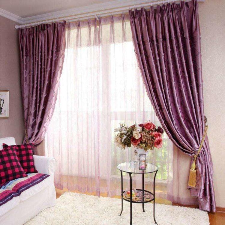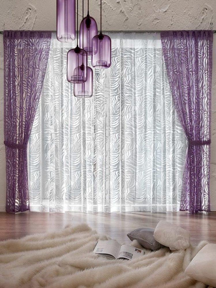 al contenido ↑Cortinas de color violeta claro en el interior (foto de ejemplos reales)