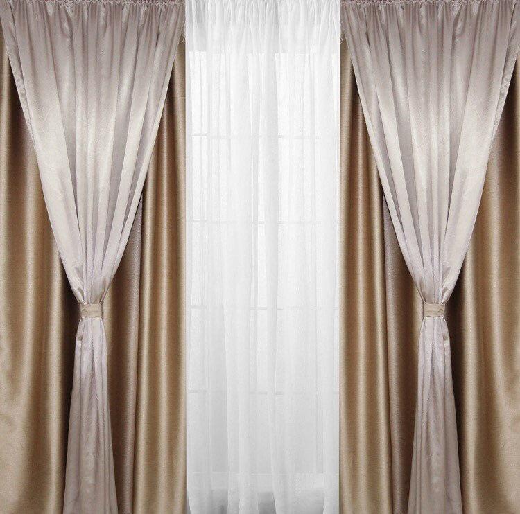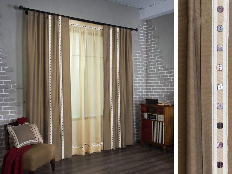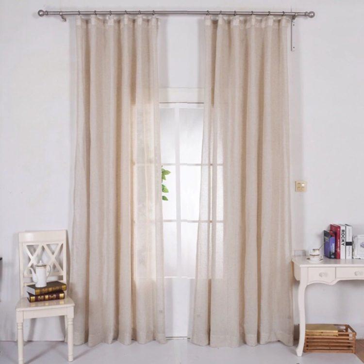 Al estar interesado en las cortinas adecuadas para los fondos de pantalla de color lila, cuyas fotos se presentan a continuación, asegúrese de prestar atención al color beige. No solo son hermosos, sino también prácticos.
