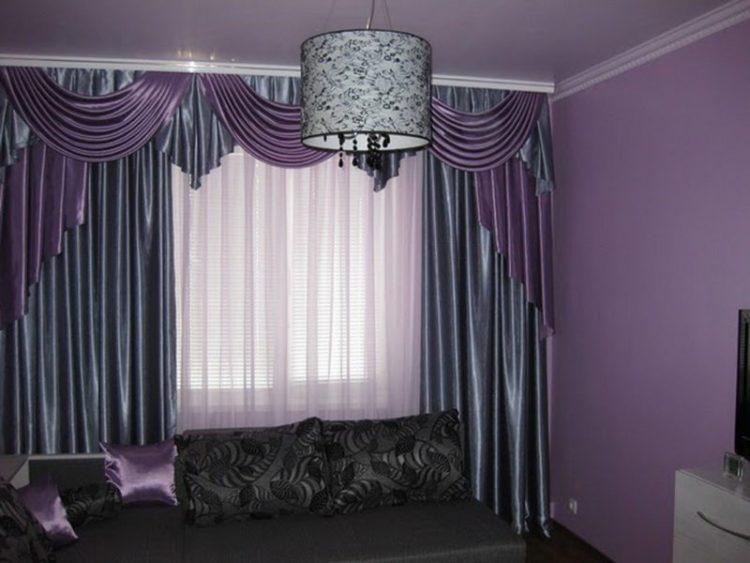 Las cortinas lilas combinan bien con el negro, pero esta combinación rara vez se encuentra en las salas de estar, ya que atenúa significativamente la luz. Es mejor usarlo para un dormitorio.