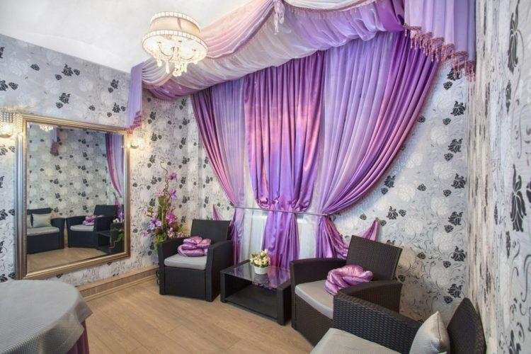 En los tonos multifacéticos de lila, miles de personas de buen sexo encontraron su alegría y aún más de ellos cambian regularmente a ese color cuando forman el séquito en ciertas habitaciones. La razón de la gran popularidad de las cortinas precisamente en el color lila es su apariencia extravagante, que se adapta fácilmente a cualquier habitación. Hoy puede encontrar fácilmente este elemento textil en un dormitorio, un salón, una sala de estar, baños y muchos otros lugares de un apartamento o casa.