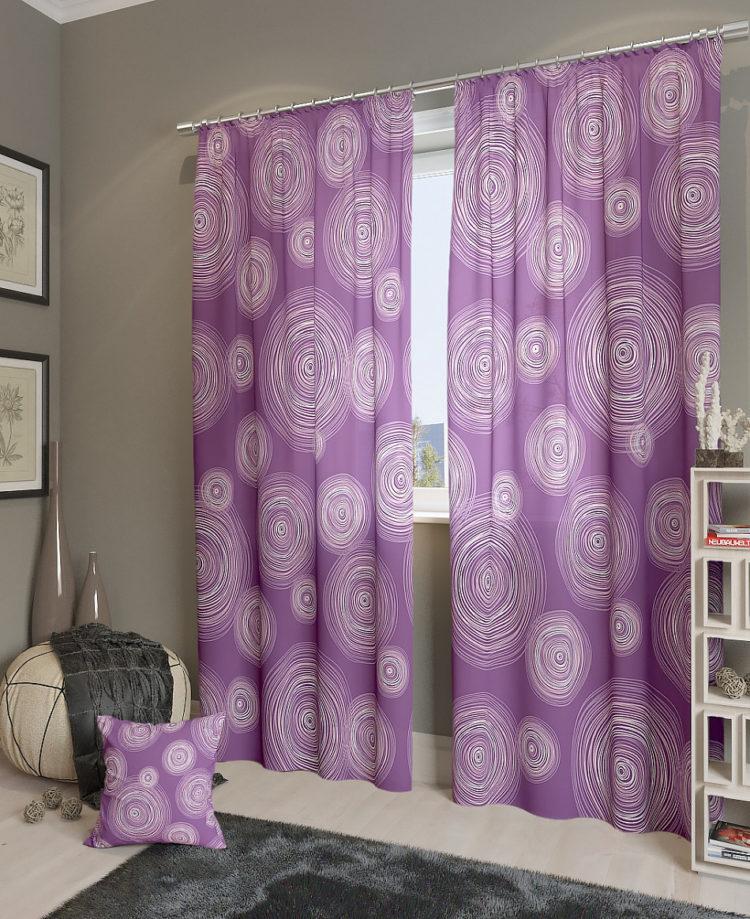 - Fondos de pantalla grises y cortinas púrpuras en el interior de la sala de estar (ejemplos de fotos)