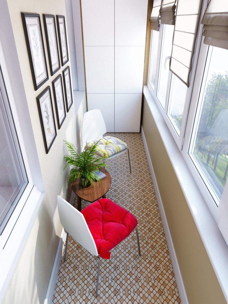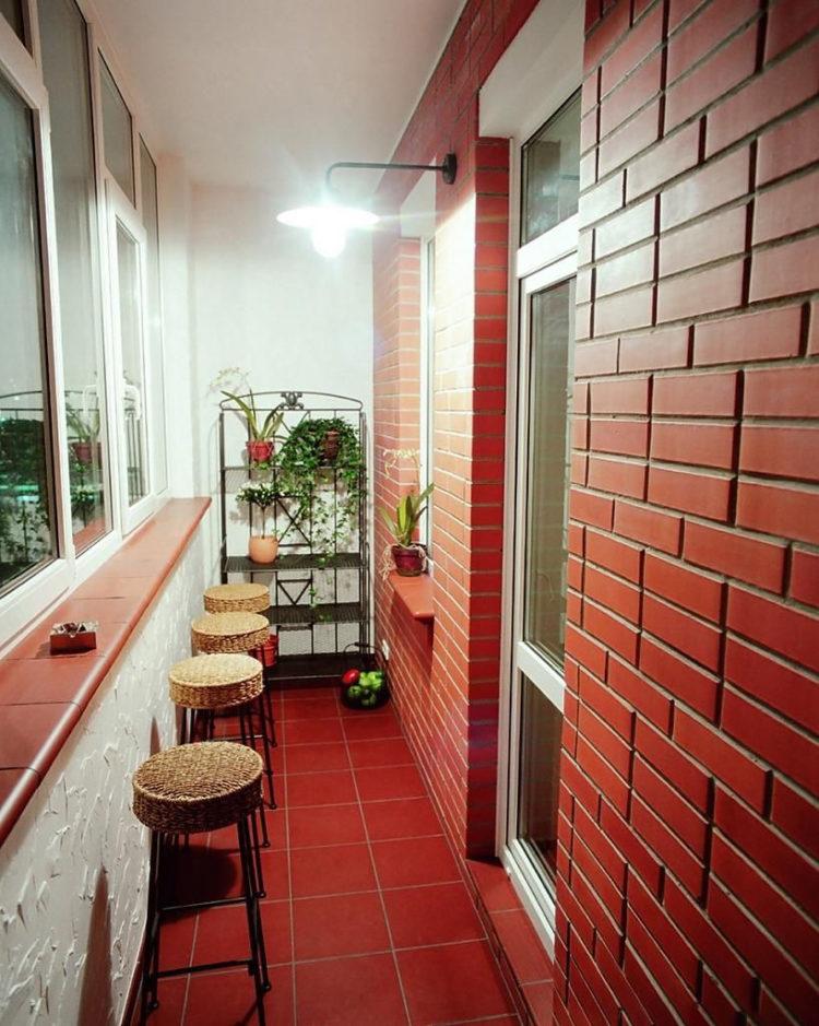 Una decoración elegante y auténtica del balcón rojo, cuya foto se presenta a continuación, lo ayudará a crear una atmósfera brillante y memorable en una habitación pequeña.
