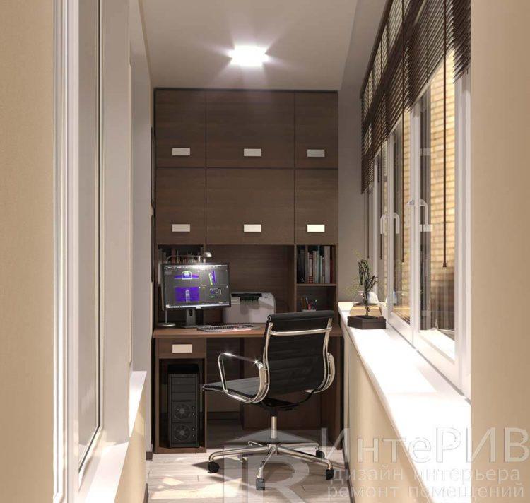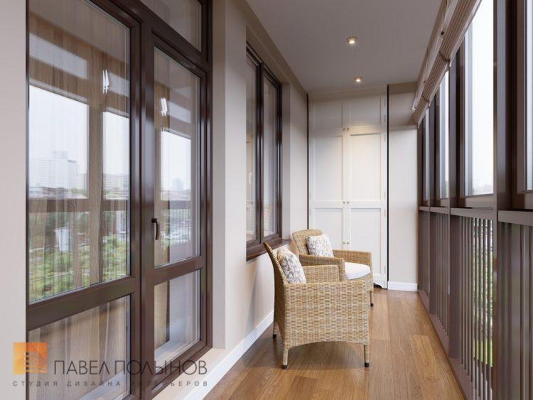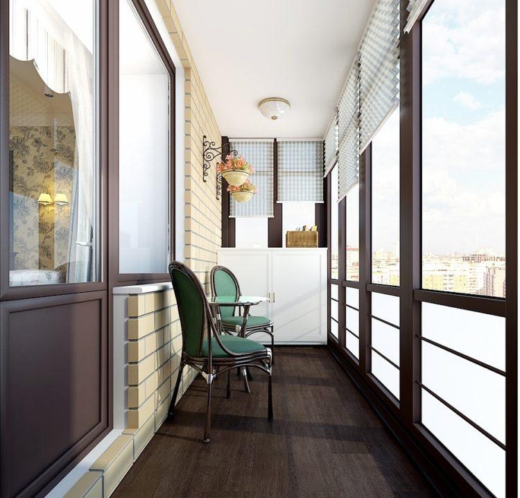 En color marrón, a menudo no solo se lleva a cabo la organización interna de la habitación, sino también la decoración del balcón desde el exterior.