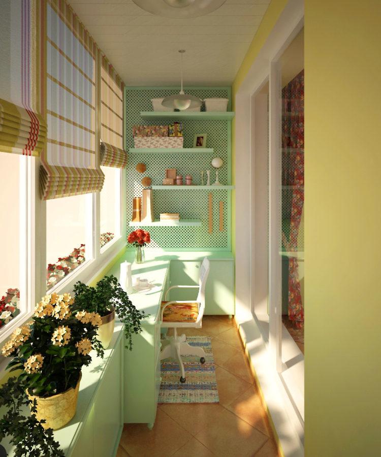 Están conectados a las cocinas, aislados y equipados para la organización de una habitación adicional, y también llevan a cabo una serie de otras medidas que garantizan la creación de las condiciones necesarias de practicidad y comodidad al usar el área utilizable. A continuación, consideraremos opciones para decorar incluso un pequeño balcón desde el interior. Además, observamos que se le presentarán opciones de diseño para azulejos elegantes, acabados de piedra decorativa, así como variaciones con otros materiales que brindan una amplia variedad de colores.