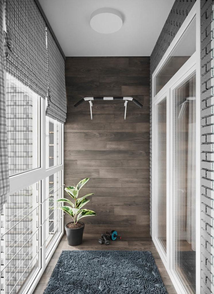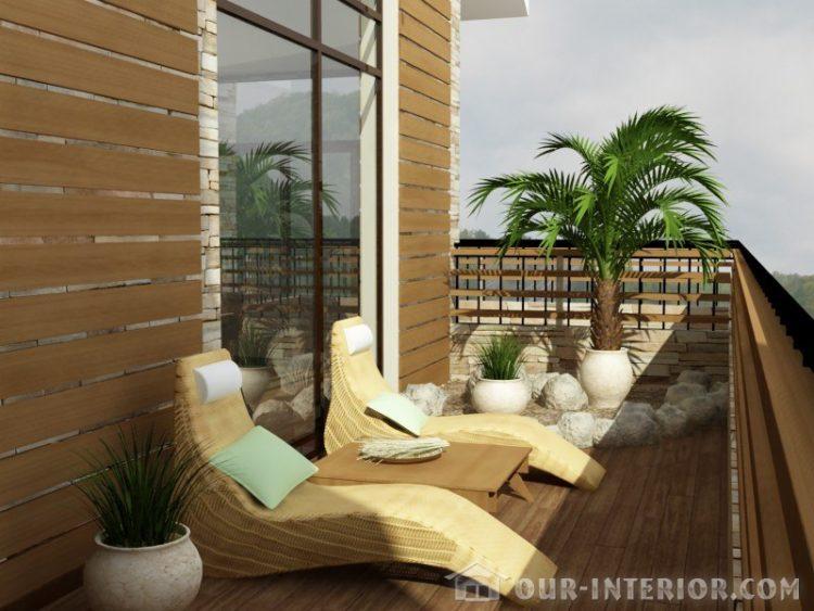 Para lograr una atenuación perfecta de la habitación y evitar la pérdida de color del material debido a la luz solar directa, el balcón a menudo está decorado con madera oscura. Este material garantiza durabilidad y durabilidad.
