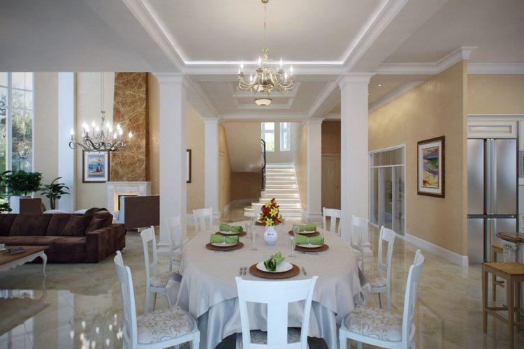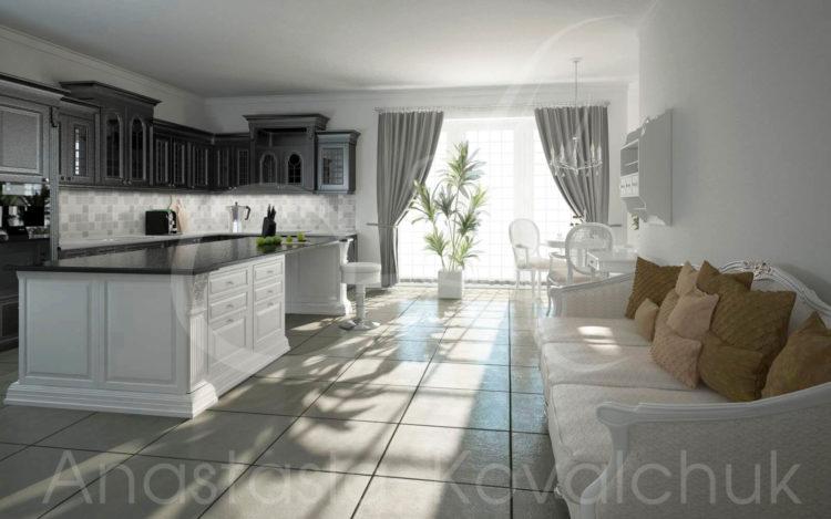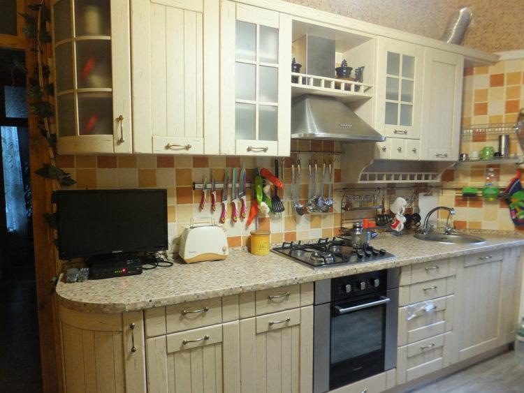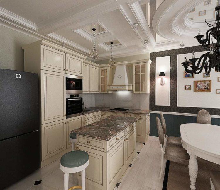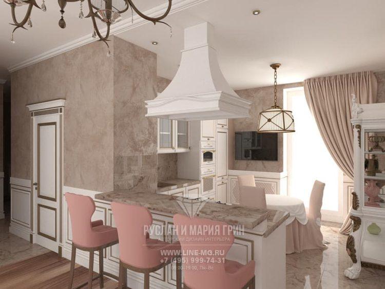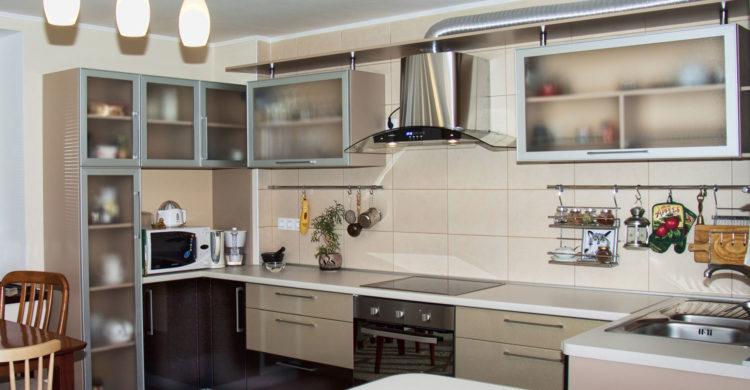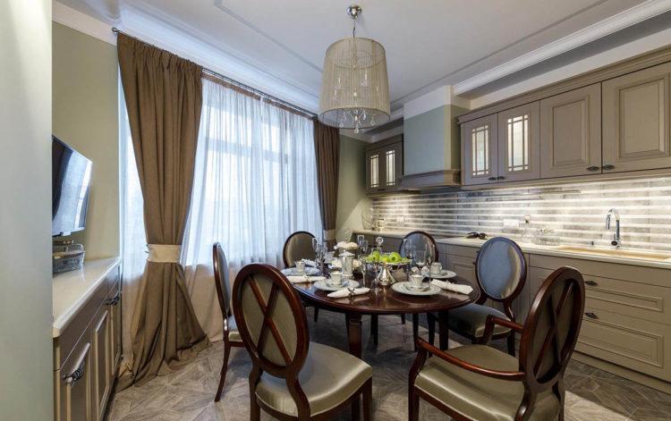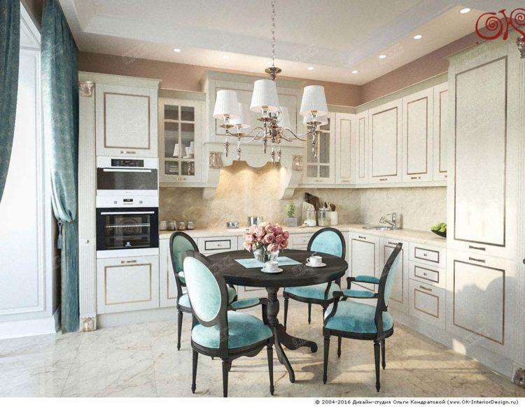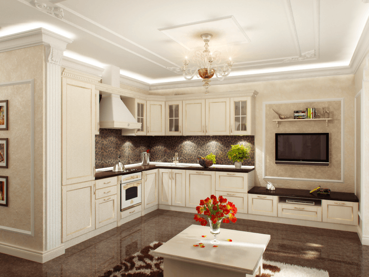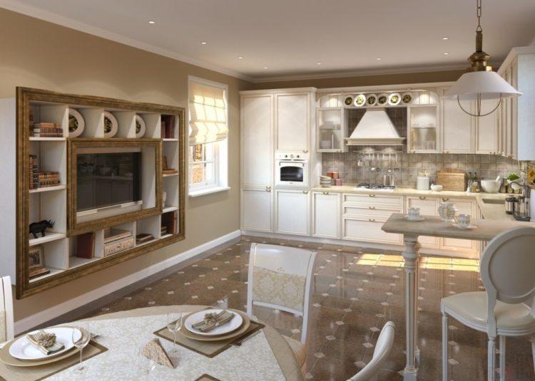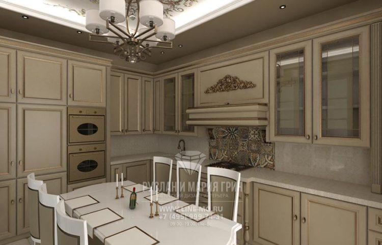 Los accesorios para barandillas en la cocina se pueden elegir en color beige. También se considera universal para habitaciones en colores clásicos.