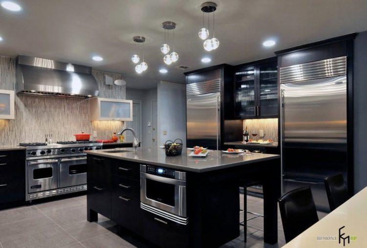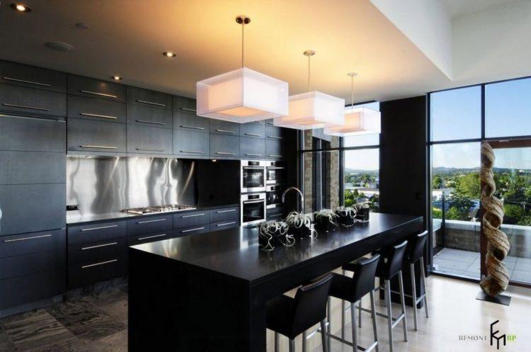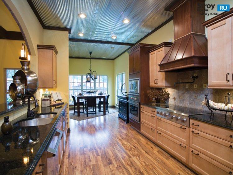 - Barras de techo oscuras para la cocina (foto en el interior)