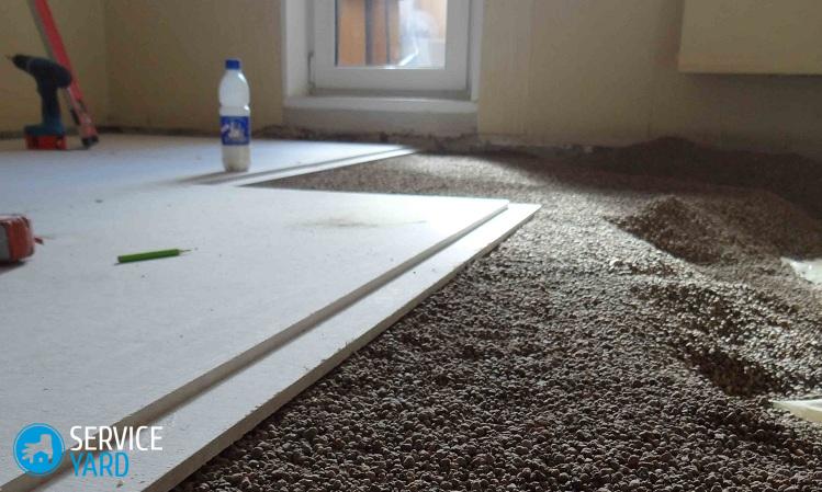 - Se usa arcilla expandida en lugar de la capa niveladora con una regla seca. El relleno se realiza en la base, y en la parte superior se cierra con láminas de paneles de yeso.