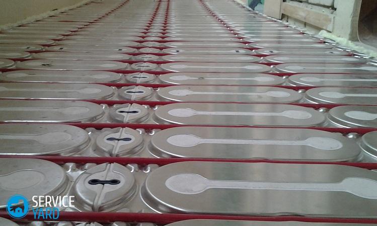 Esta es una opción bastante costosa y difícil, pero a veces también se usa. Las tuberías deben estar bien tapiadas con solera de hormigón. Hay una segunda opción: instalación debajo del piso. Esta es una forma más simple y económica. El acabado se coloca sobre una junta de poliestireno-aluminio. Si el piso es de madera, se colocan tuberías entre los rezagos.