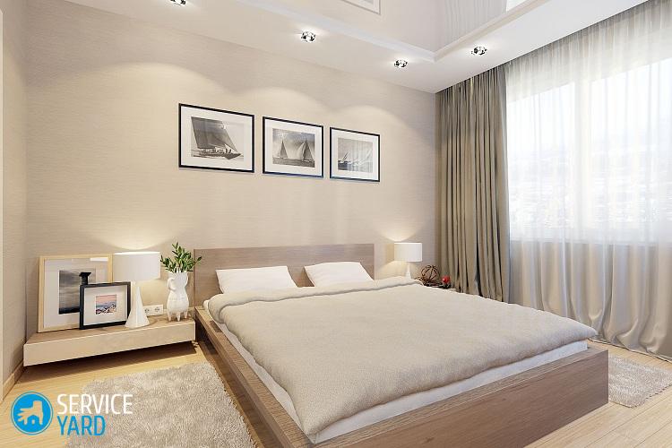 El tamaño y la forma de la cama son cruciales al elegir un diseño interior. Debe recordarse que los tonos oscuros reducen visualmente la habitación.