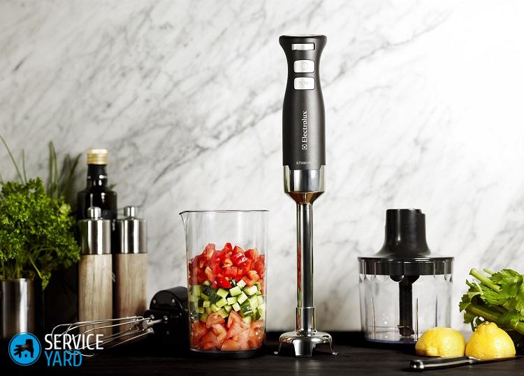 El dispositivo sumergible es un mango al que se unen las boquillas con varios cuchillos en la base. Es necesario conectar la boquilla deseada, seleccionar la velocidad, sumergir el dispositivo en un recipiente con productos procesados y presionar el botón.