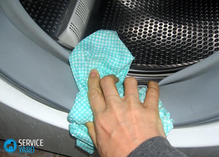 Importante! No siempre es posible detectar signos de hongos. La presencia de un olor a humedad del dispositivo de lavado indica la presencia de elementos de moho. Si toma una servilleta limpia y corre sobre el caucho del sellador, entonces una marca negra en la servilleta indica la presencia de cultivos de hongos. Para resolver el problema, aplique una pequeña cantidad del agente químico al sello de goma.