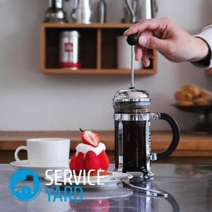 En realidad, una prensa francesa ni siquiera es una cafetera, sino algo así como una tetera. No se necesita electricidad, el café molido simplemente se vierte en un recipiente especial, se llena con agua y se infunde. Barato y sin esfuerzo. Y la red no necesita ser incluida.