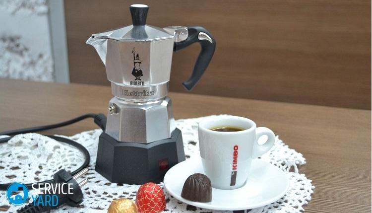 - El dispositivo está alimentado, incluida la red. Se puede usar una cafetera de este tipo en una estufa de gas.