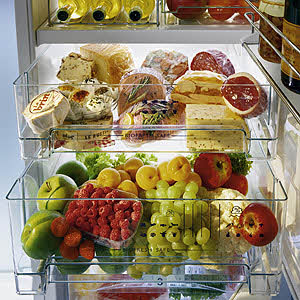 al contenido ↑Importante! En los refrigeradores con el sistema NoFrost, los alimentos se secan rápidamente, por lo que debe envolverlos en polietileno o usar recipientes para almacenarlos. En el congelador, los productos semiacabados no se congelan entre sí y conservan su aspecto original.