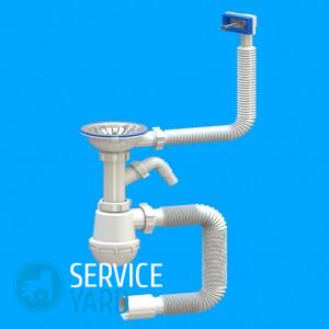 - Reemplace el sifón ubicado debajo del fregadero con otro equipado con un sistema de drenaje adicional. Sigue el enlace para descubrir cómo elegir el correcto. sifón para lavavajillas.