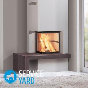 El frontal se coloca contra la pared, angular, respectivamente, en la esquina de la habitación. Sobre lo interesante y rentable que es vencer al segundo tipo de dispositivos, lea en nuestra publicación separada "Chimenea de esquina en el interior".
