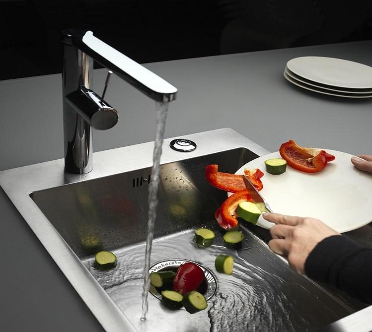 - Algunos modelos tienen un botón neumático: puede integrarse en los muebles de su cocina para una mayor facilidad de uso.