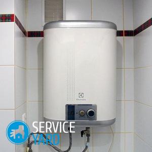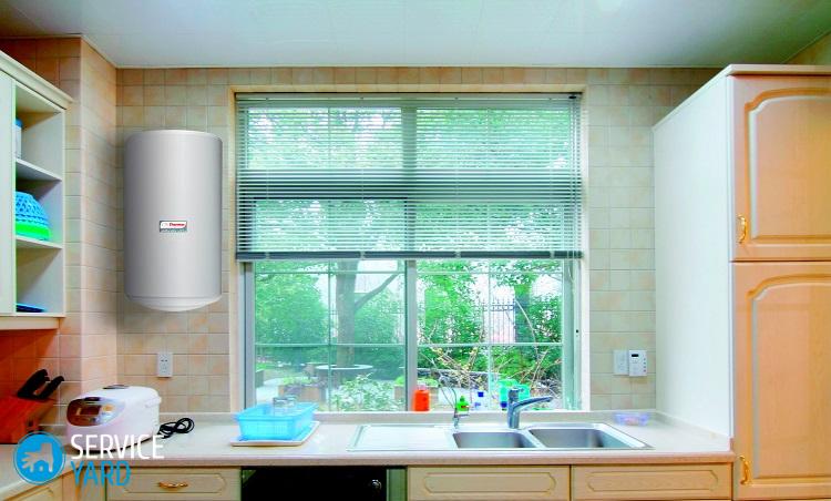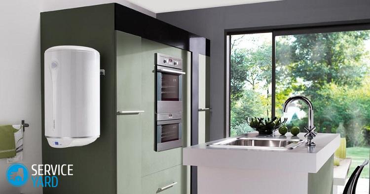 - Si aumenta el volumen del tanque, tendrá que ampliar las dimensiones del calentador de agua, y para habitaciones pequeñas, esta no es la opción correcta. En el mercado moderno hay nuevos modelos que se pueden instalar debajo del techo. También hay desarrollos modelo que se colocan en un gabinete típico con tuberías, ubicado en el baño.