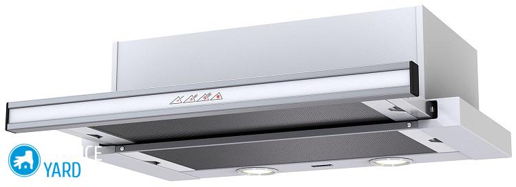 - Por diseño, las campanas son de pared, techo y empotradas. El primer tipo es universal, las campanas de techo se instalan en habitaciones grandes y los modelos integrados no ocupan mucho espacio y son perfectos para cocinas pequeñas.