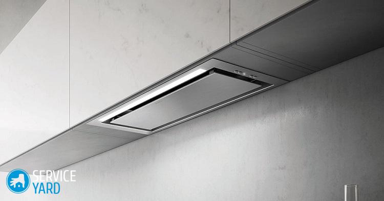 Importante! Los modelos incorporados se pueden ocultar debajo de la encimera o en el gabinete de la cocina. En la primera versión, la campana tiene la forma de un bloque y se encuentra al nivel de la encimera, mientras recoge "olores desagradables" y "cenizas" directamente de su superficie.