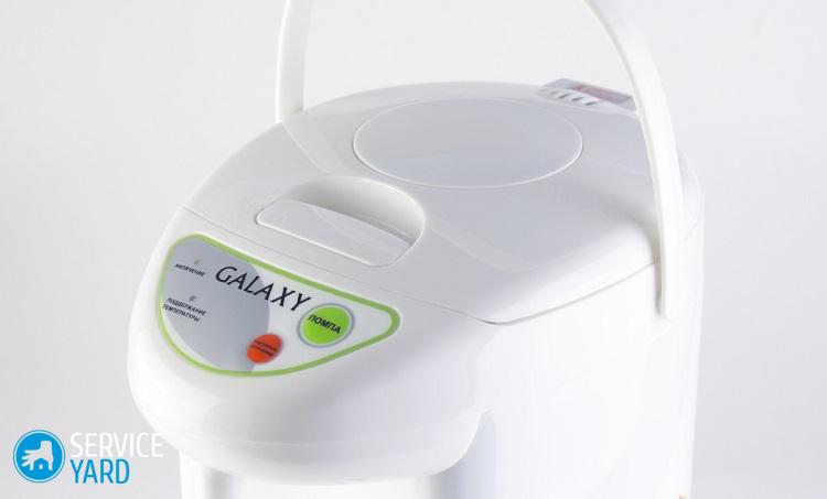 - Para verter agua de una tetera eléctrica en una taza, debe levantarla, transferirla de un lugar a otro o inclinarla. Se pueden verter hasta cinco litros de líquido en un sudor térmico, sin tener que levantar el dispositivo. Solo necesita sustituir un vaso o taza debajo del pico del dispositivo y presionar un botón. El uso del sudor térmico es ideal para niños, personas enfermas y débiles, personas con discapacidades, ya que es muy difícil para ellos levantar y sostener uno lleno, y además, hay una tetera eléctrica muy caliente que está llena de líquido.
