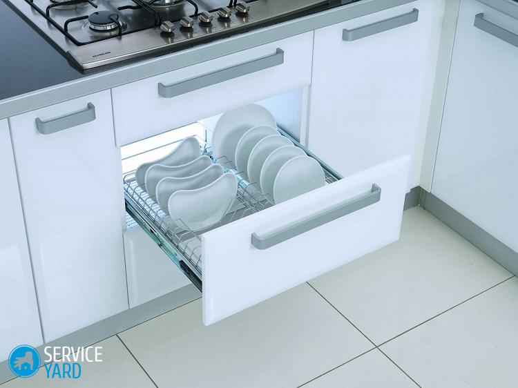 Importante! El único inconveniente de usar este tipo puede ocurrir si su tamaño es significativamente diferente del tamaño del gabinete donde está instalado. En este caso, el secado puede moverse arbitrariamente durante la extracción y exposición de los platos.