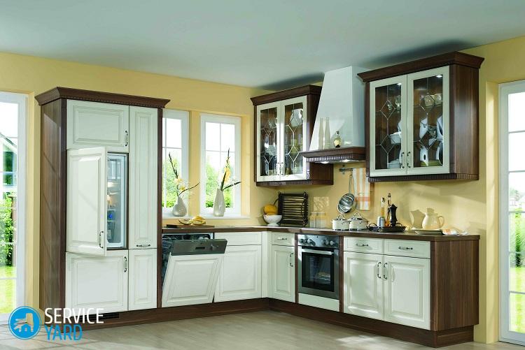 Importante! El refrigerador incorporado carece de una carcasa decorativa, por lo que puede realizar plenamente sus talentos de diseño. Y el sistema de "pantógrafo" le permite conectar las puertas del gabinete y el refrigerador, para que el problema de las puertas dobles desaparezca por sí solo.