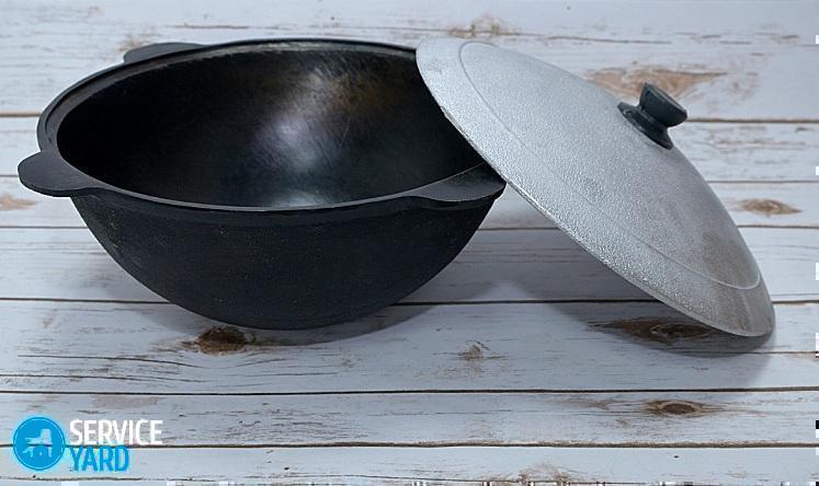 El caldero de hierro fundido se caracteriza por la importancia de la preparación para su uso. Se fuma especialmente para formar una capa antiadherente. Cuando esta capa está dañada, es extremadamente necesario restaurarla, porque todo comenzará a arder.