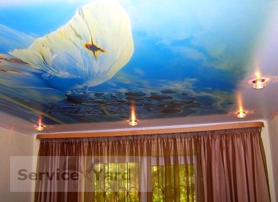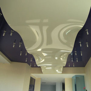 Es mucho más fácil cuidar un acabado mate que uno brillante: no quedan manchas. Tales techos están hechos de una tela impregnada con poliuretano, y de hecho parece una superficie perfectamente enlucida.