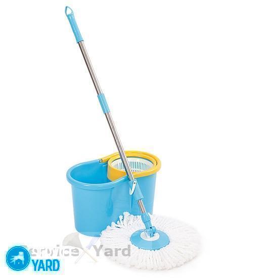 La herramienta está equipada con un giro automático. El enjugador para trapear con el exprimidor tiene un diseño bastante complicado: hay un rodillo de esponja especial al final del palo, está equipado con un exprimidor automático y difiere en el grado de rigidez.
